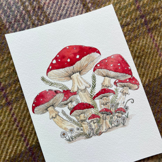 Red Cap Mushrooms – Watercolor Fine Art Print by Caitlin Tobey | 5×7