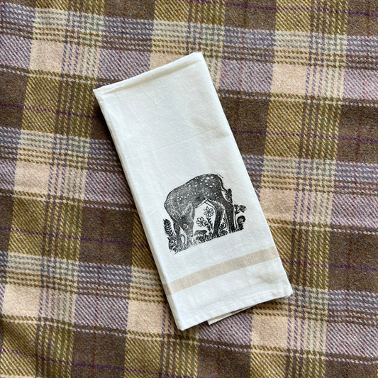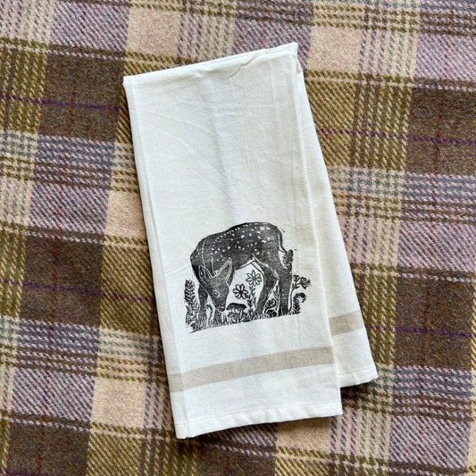 Hand-Stamped Fawn Tea Towel – Limited Edition, 100% Cotton Kitchen Towel |#1
