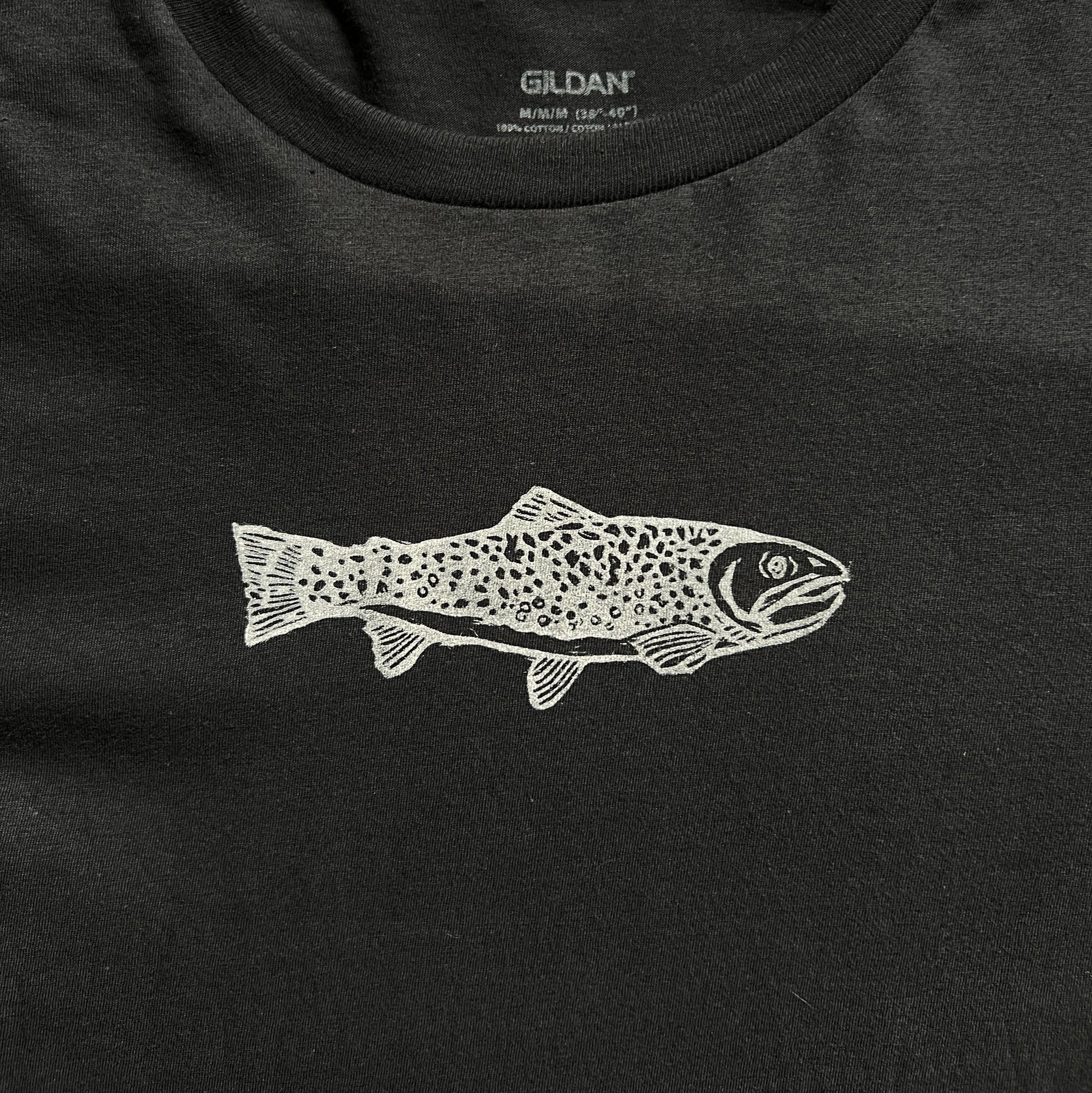Hand Printed Black T-Shirt – Brook Trout –Size Medium – Limited Edition |#001