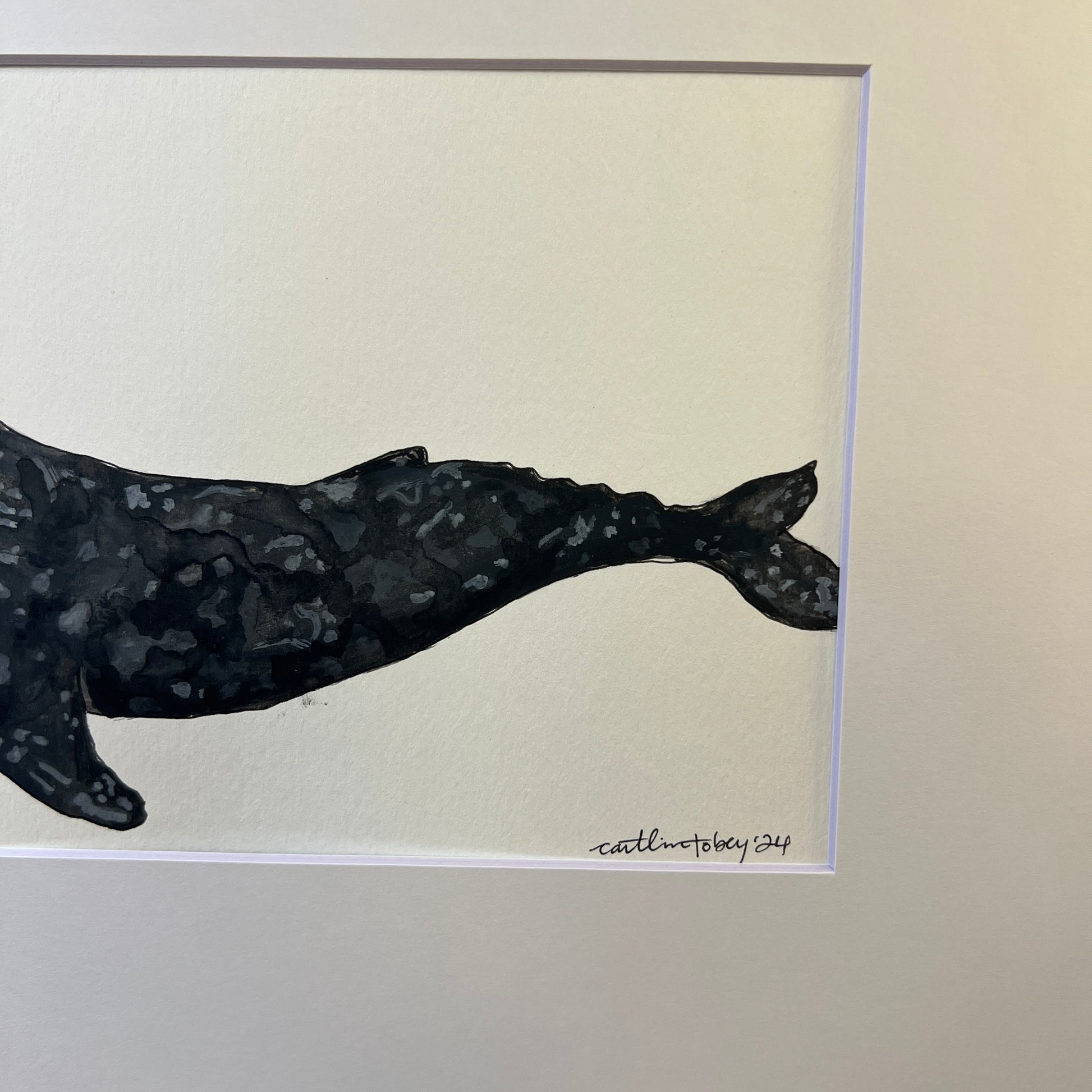 Original Gray Whale Painting, Gouache & Micron Pen, signed by Caitlin Tobey