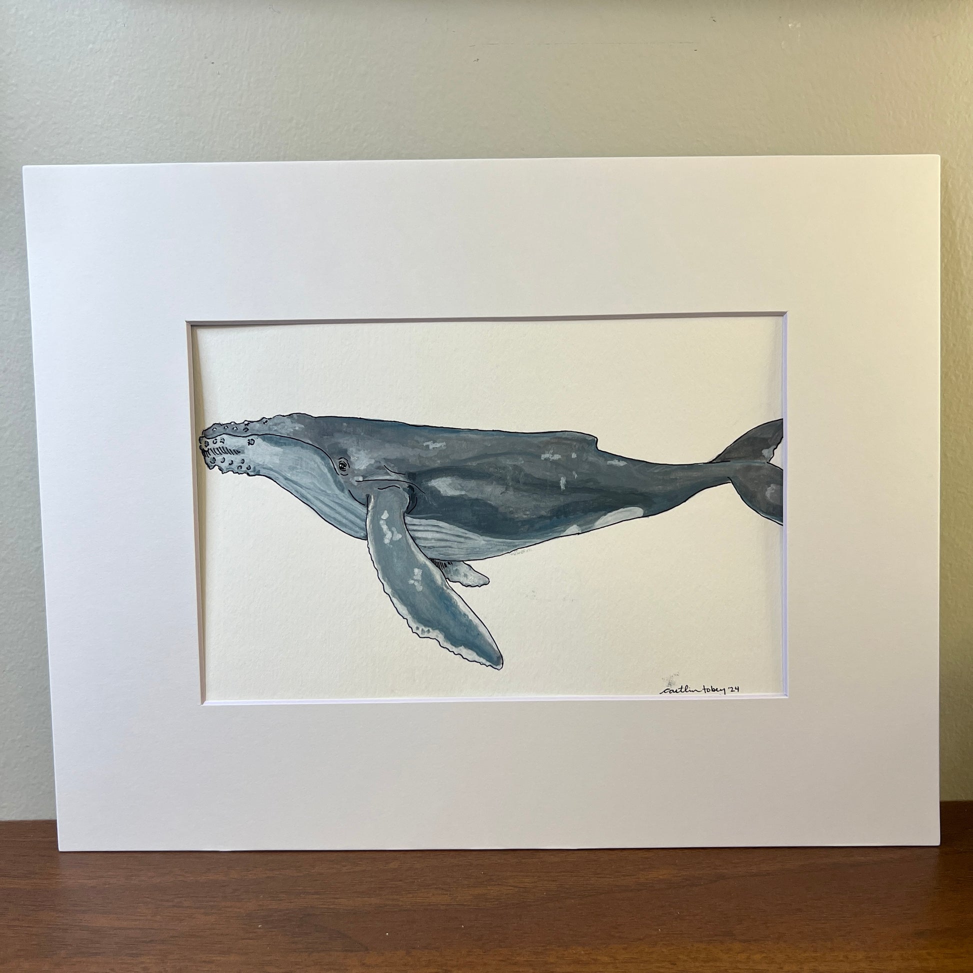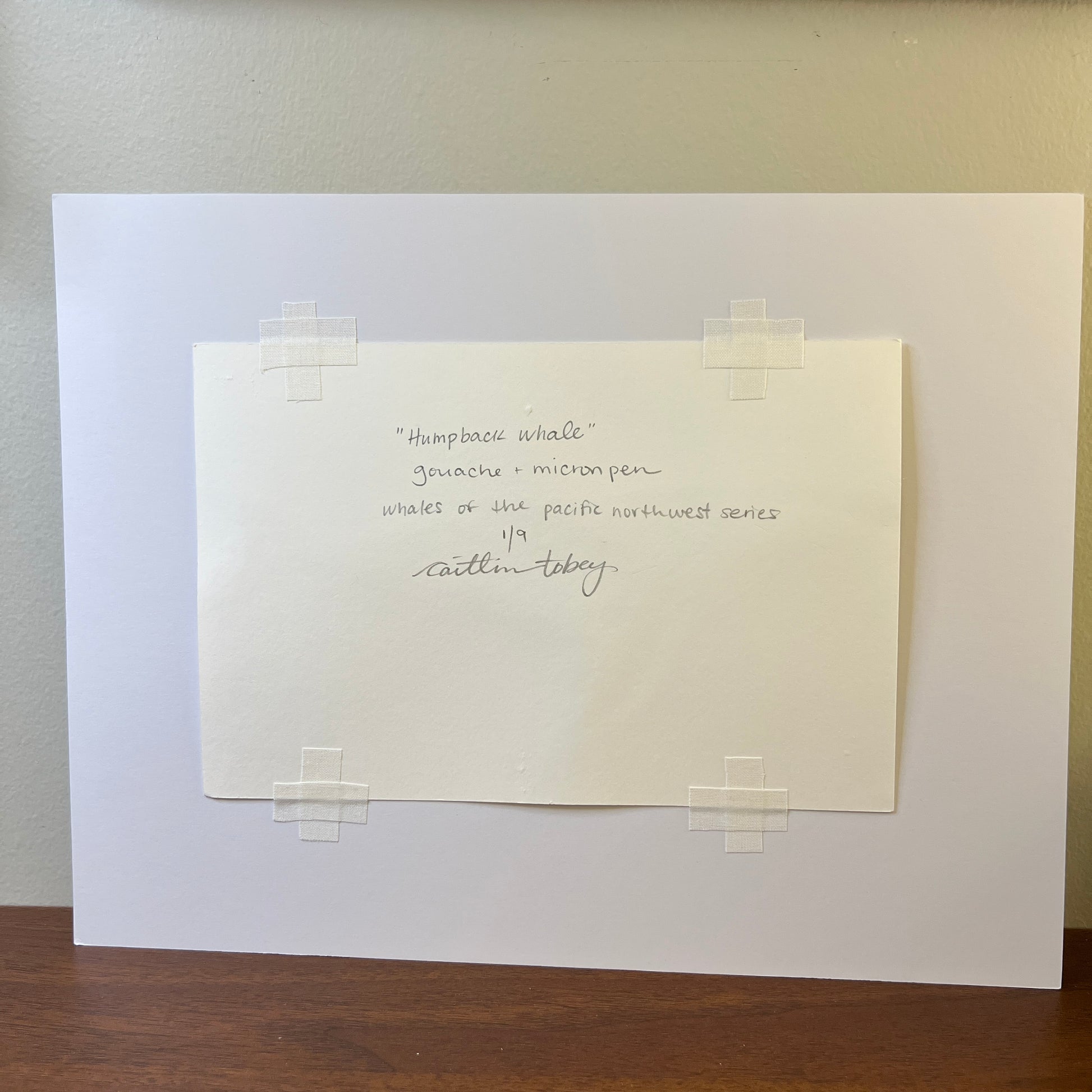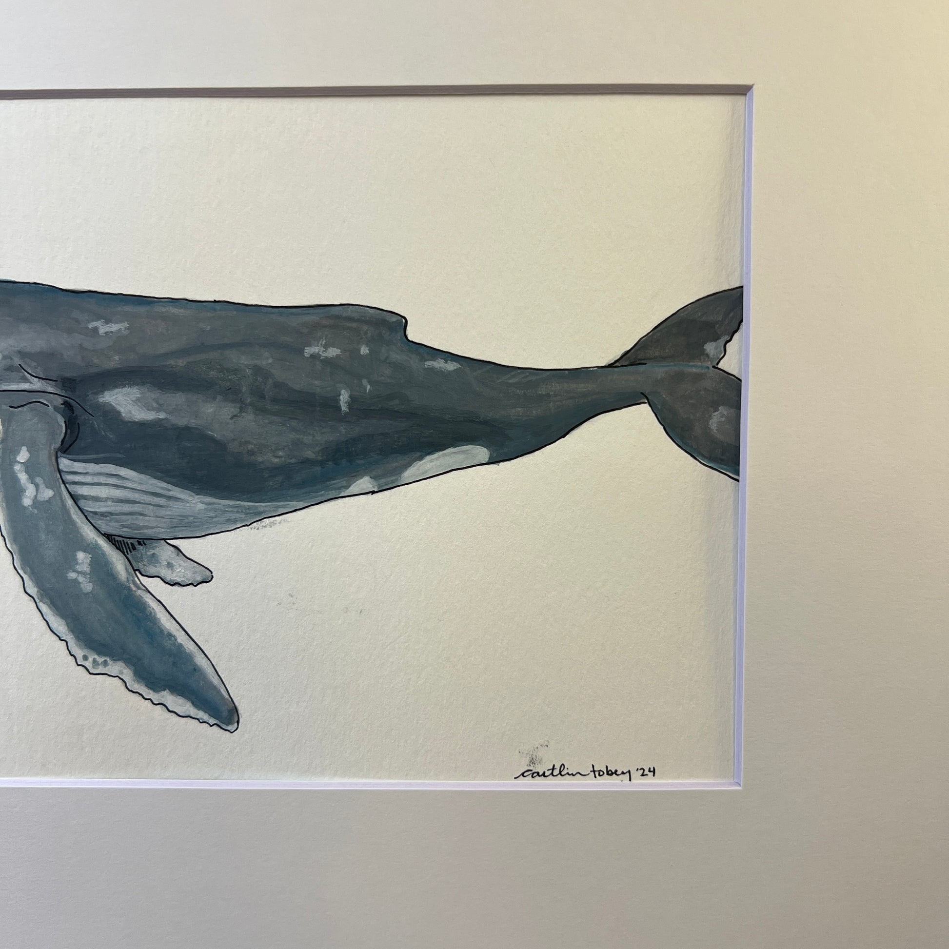 Original Humpback Whale Painting, Gouache & Micron Pen, signed by Caitlin Tobey