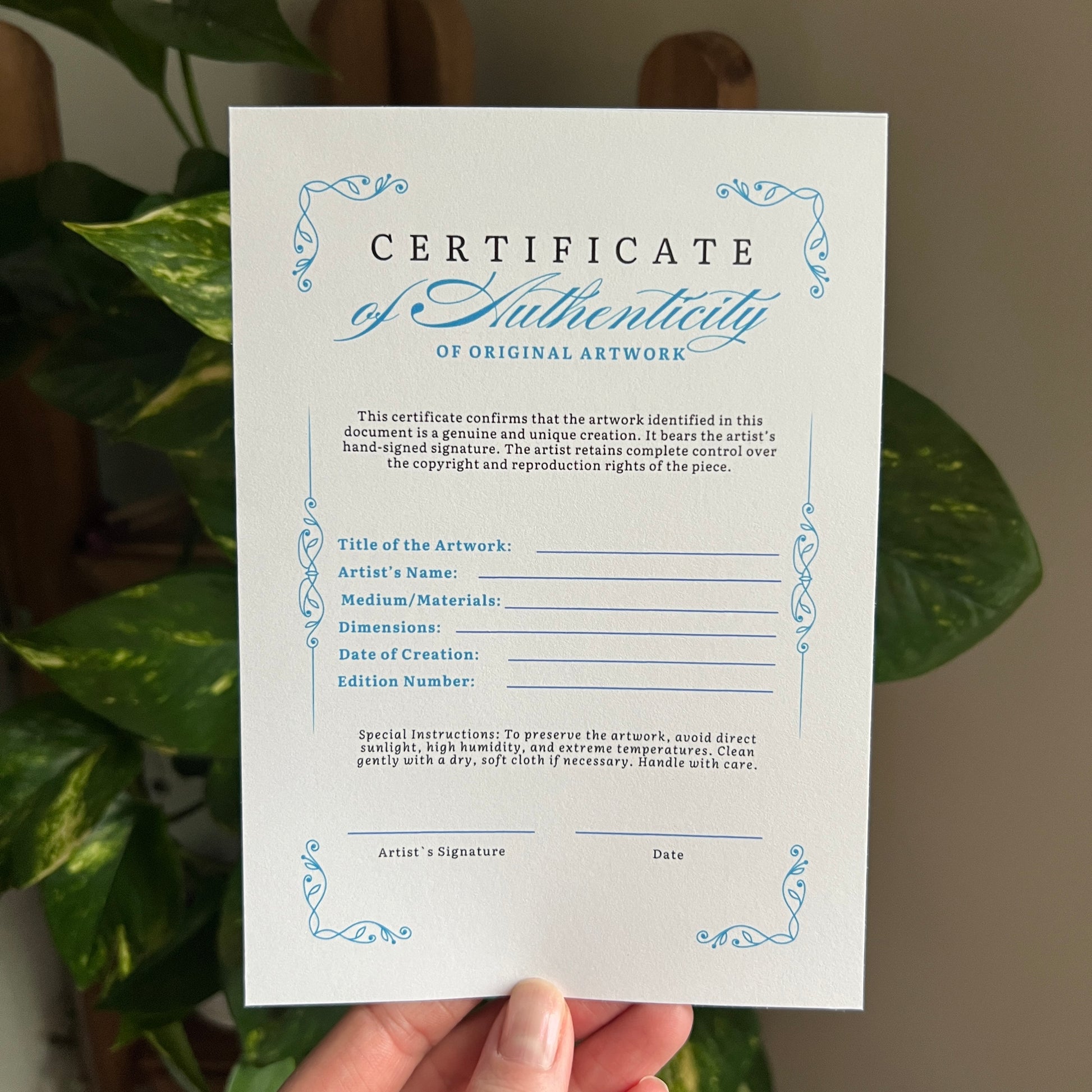 Each piece is one of a kind, signed by the artist and comes with a signed Certificate of Authenticity.