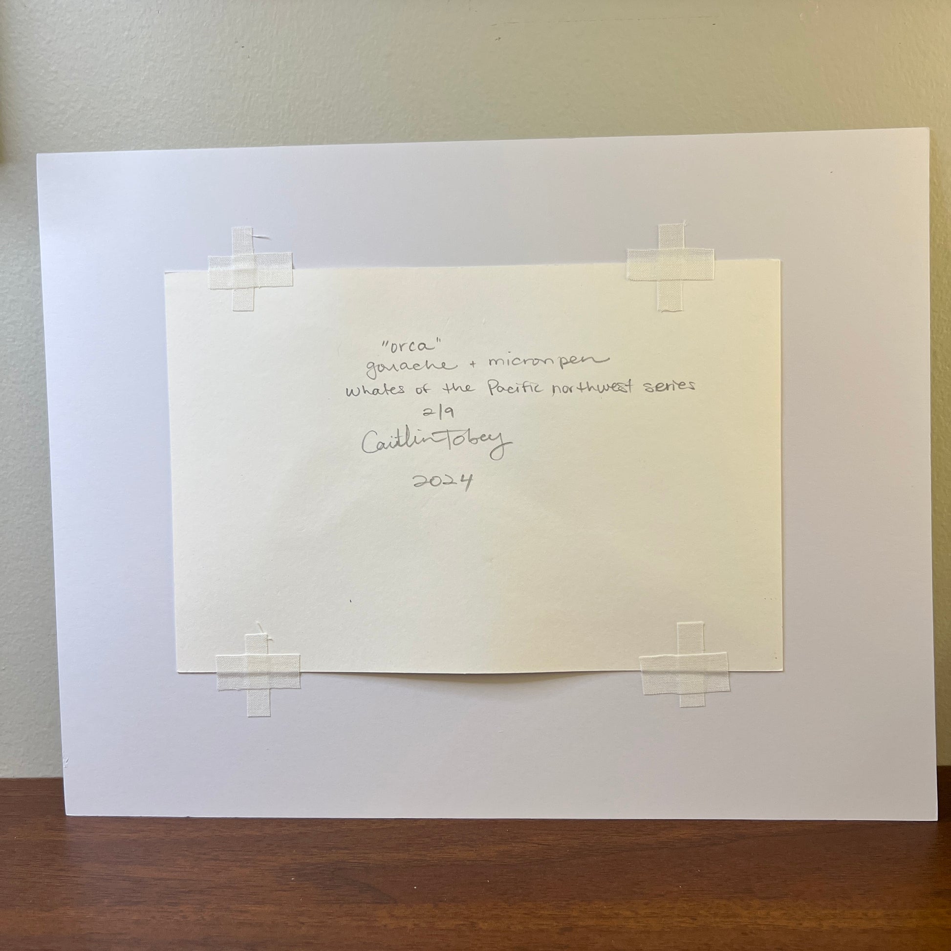 Original Orca Whale Painting, Gouache & Micron Pen, signed by Caitlin Tobey